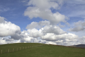 Fence, field and clouds