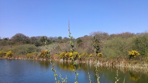 blue clouds cumulus natural nature ragged sky white lake landscape water light orange sun light sunset blue sky countryside green walk meadow bank river tide tree