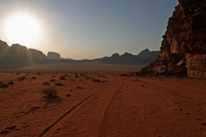 ancient drawings jordan paintings red rock wadi rum desert nature sand sandstorm storm wind formation sandstone bridge flag Jordanian flag mountains Petra Wadi Araba hill mountain stone blue land landscape landscapes middle east rocks tourism waste wild