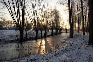city park dawn nature. sunrise tree silhouettes winter winter sun winter trees blue sky brown landscape sun sunny sunny winter tree blue trees winter blue winter landscape cold early freezing frosty melt Morning snow sun up water wet white crocus purple safron centred sun drenched winter flowers winter garden. berry