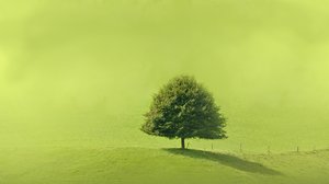 Solitaire tree on a green hill
