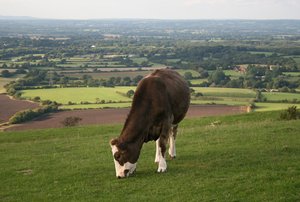 Cow on the hill: A cow grazing on the South Downs, West Sussex, England. 300px
