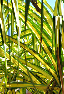thru the foliage, background, blades, bright, color, colored, colorful, colors, colour, coloured, colourful, colours, foliage, green, green and yellow, leaves, light, lines, palm, palm foliage, pandan, pandanus, shade, shadows, sharp, spreading, striped, stripes, sunlight, sunshine, texture, textures, thin, yellow