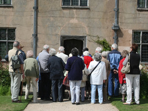 Tour group: A tour group looking at an historic house in England.