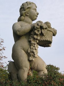 flower basket sculpture, art, artwork, basket, classic, figure, figures, figurine, flower, flowers, girl, handicraft, historic, naked, romantic, sculpture, sculptures, statue, statues