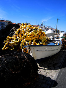 Sete, blue, boat, fishing, fishingboat, France, harbor, harbour, net, nets, Sete, ship, white, yellow