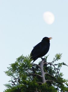 Our blackbird on her favourite tree, singing her evening song.....