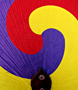 fan colours, bright, color, colored, colorful, colors, colour, coloured, colourful, colours, contrast, cooling, curled, curves, decorated, decorative, fabric, fan, fanned, fanned out, flat fan, korea, korean, spread, spread out, stretched, stretched fabric, swirling, swirls, textiles