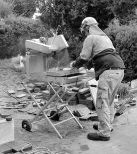 cutting to size1: workman cutting paving bricks to size 300px