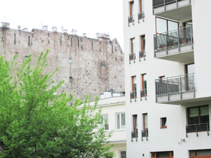 An old building: Ruined building in Warsaw's Praga. And a modern housing 300px