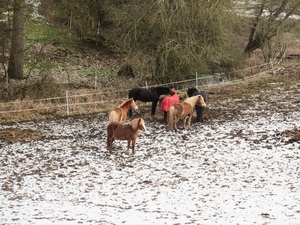 group of horses in winter