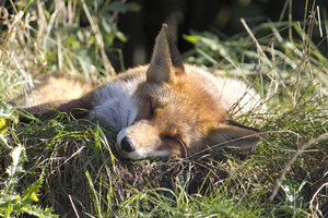 Sleeping fox: A sleeping fox (Vulpes vulpes) in Sussex, England. 300px