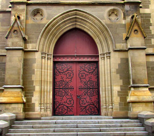 closed doors, appearance, arch, arched, architectural, architecture, christian, church, closed, closed doors, colors, colours, community, construction, craftsmanship, dark, distinctive, doors, doorstep, doorway, elaborate, elaborate-metalwork, entrance, exit, exterior, historic, historical, lines, old, ornamental, ornamentation, ornate, patterns, perspectives, religious, Sacred, secure, secured, security, steps, stone, stonework, style, textures, walls, wood, wooden, wrought-iron