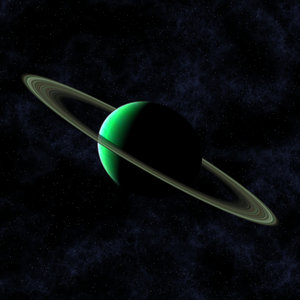 Green Planet: A green planet in space, with rings like Saturn. 300px
