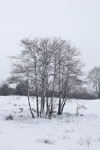 Snowy trees: A stand of young trees in a meadow in West Sussex, England, in February snow. 300px