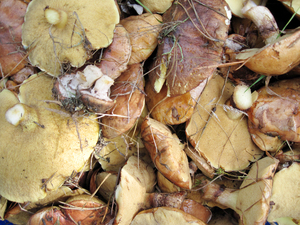 Mushroom!: A lot of mushroom! Suillus luteus,commonly referred to as slippery Jack or sticky bun in English-speaking countries, its names refer to the brown cap, which is characteristically viscid in wet conditions. 300px