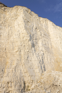 Chalk cliff: Coastal chalk cliff with recent rockfall near Birling Gap, East Sussex, England, in evening light. 300px