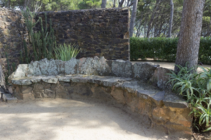 Garden seat, architecture, curved, elements, garden, rest, seat, shade, Spain, spanish, stone, wall