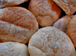 sesame burger buns3b: large sesame covered bread rolls, 300px