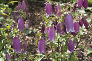 Pink campanula: An unusual pink campanula, Campanula punctata, growing in a garden in England. 300px