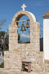 Church bells, arch, architecture, bells, christian, church, cross, elements, Greece, Greek, mountains, orthodox, rural, stone