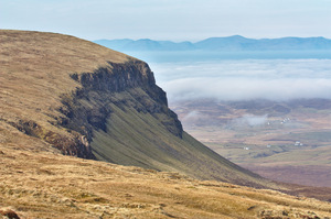 Quiraing cliffs: Dramatic cliffs on the Trotternish Ridge, just to the north of the Quiraing, on the Isle of Skye 300px