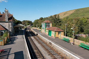 Railway station, Corfe Castle, Dorset, England, english, Great Britain, line, platform, railway, station, tourism, tracks, transport